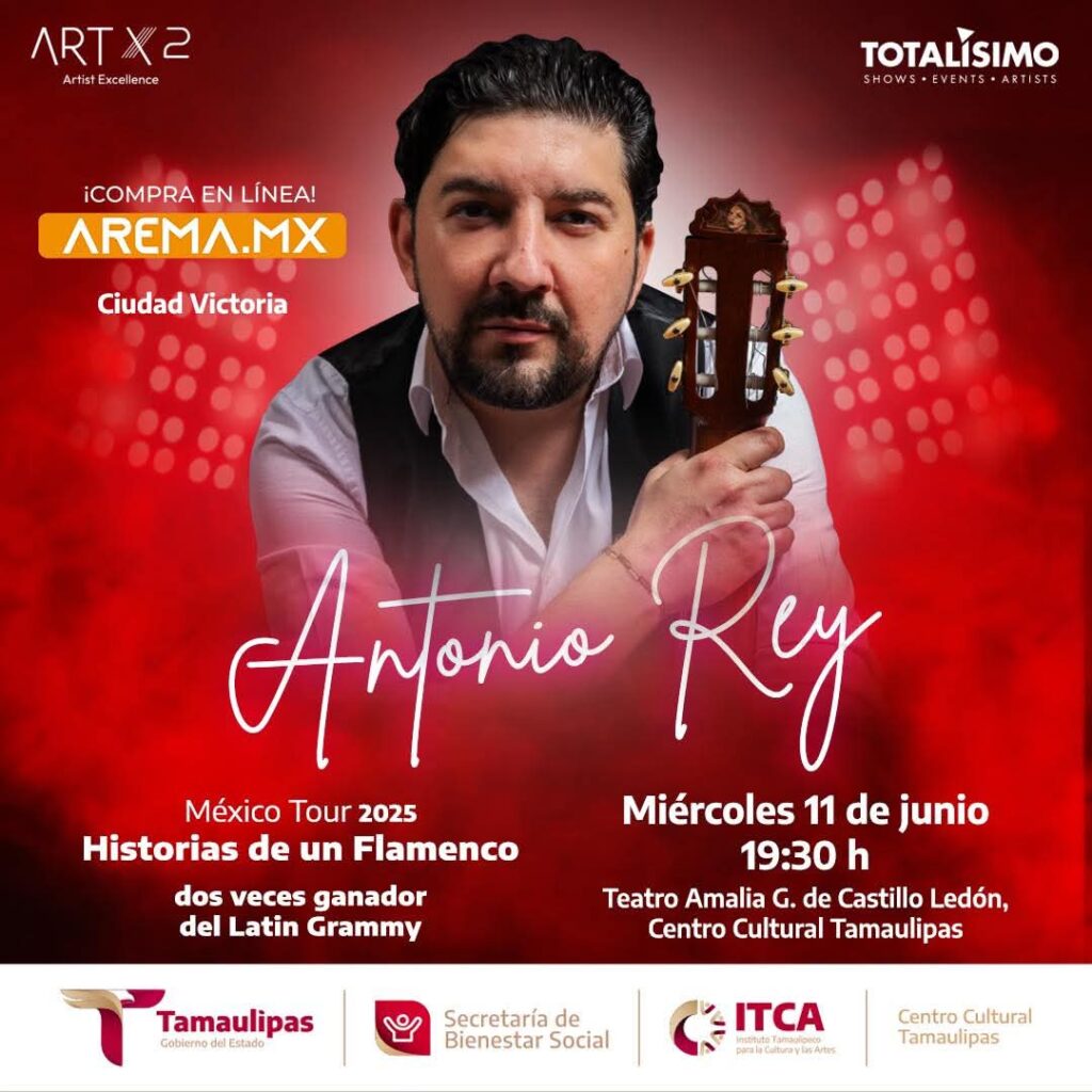 Ciudad Victoria, Tamaulipas.-El Instituto Tamaulipeco para la Cultura y las Artes dio a conocer que el reconocido guitarrista y compositor español Antonio Rey se presentará el próximo miércoles 11 de junio, a las 19:30 horas en el teatro Amalia G. de Castillo Ledón, del Centro Cultural Tamaulipas.