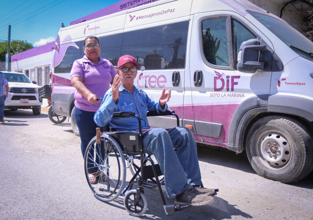 Ciudad Victoria, Tamaulipas.– A través de la Dirección de Atención a Población Prioritaria, el Sistema para el Desarrollo Integral de la Familia de Tamaulipas, presidido por la doctora María de Villarreal, continúa con los recorridos de la Ruta de la Esperanza por todas las regiones del estado, entregando cerca de 300 aparatos funcionales y apoyos para la salud a personas que los solicitaron por medio de la Subdirección de Atención Ciudadana.
