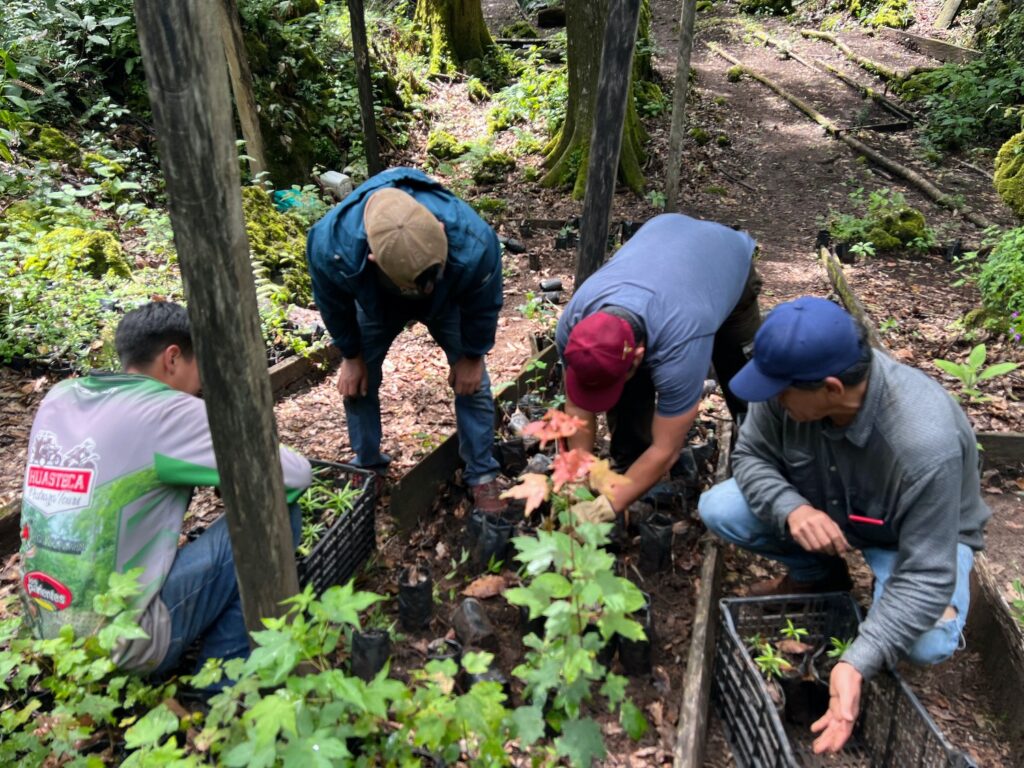 Las especies sembradas, en el corazón de la Reserva de la Biosfera de El Cielo, como el liquidámbar (Liquidambar styraciflua), encinos (Quercus spp.), arce (Acer skutchii) y podocarpus (Podocarpus matudae), cumplen funciones esenciales como retienen suelos, facilitan la recarga de mantos acuíferos y aumentan la cobertura forestal, mejorando con ello las condiciones ecológicas y garantizando la permanencia de servicios ambientales vitales para las comunidades.