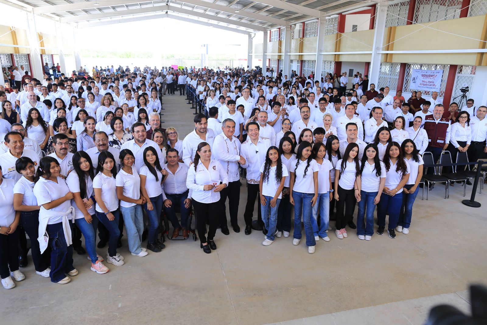 En este acto Miguel Ángel Valdéz García, secretario de Educación en Tamaulipas, destacó que, gracias a estos apoyos, todas y todos los alumnos de educación media superior “cuentan con un banco, con un maestro y con un aula como esta. No se nos quedó ninguno fuera”, expresó.