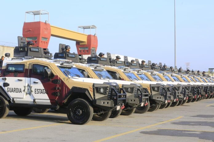Durante el evento, en el Complejo Estatal de Seguridad Pública, el gobernador dio el banderazo a 14 vehículos blindados tipo Mamba y 15 camionetas pick up Ram 2500, para fortalecer el despliegue operativo de la corporación.