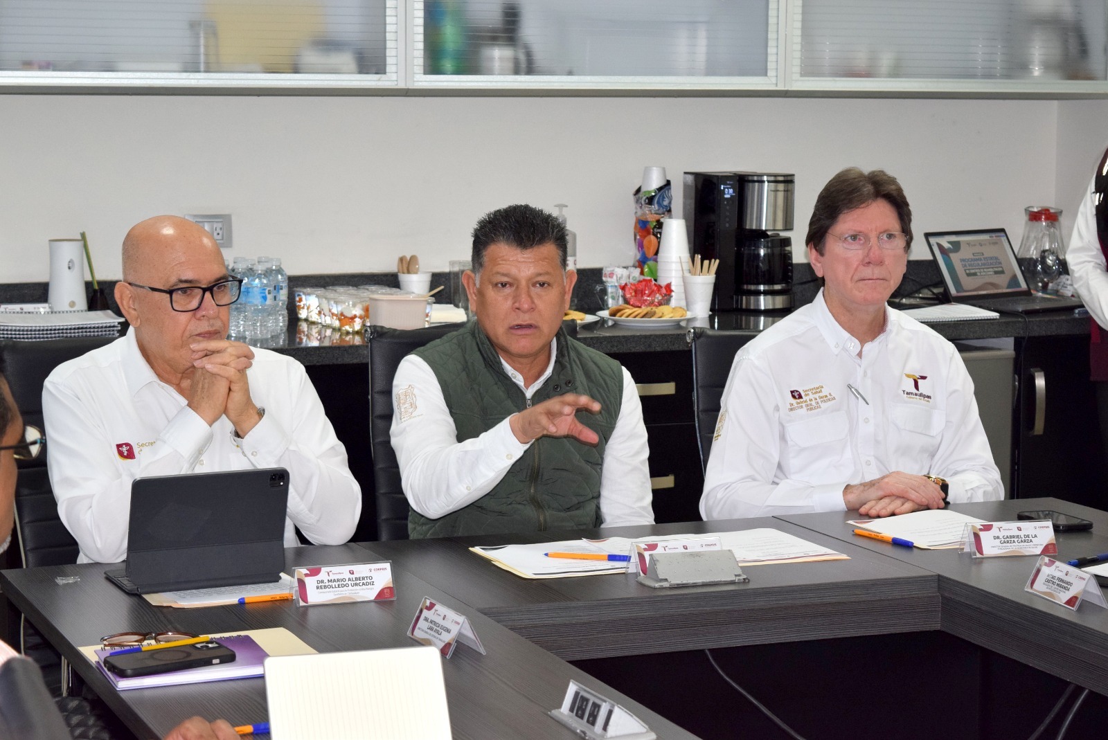 En representación del secretario de Salud, Vicente Joel Hernández Navarro, el comisionado Estatal para la Protección contra Riesgos Sanitarios, Mario Rebolledo Urcádiz, presidió la reunión en la que se implementó esta estrategia estatal que está orientada a fortalecer la atención digna, segura y profesional de las personas con problemas de adicción en Tamaulipas.
