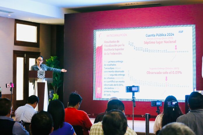 En este marco, la secretaria Anticorrupción, Norma Angélica Pedraza Melo, informó que Tamaulipas se posiciona actualmente como una de las entidades con menor número de observaciones en los procesos de fiscalización realizados por la Auditoría Superior de la Federación (ASF).