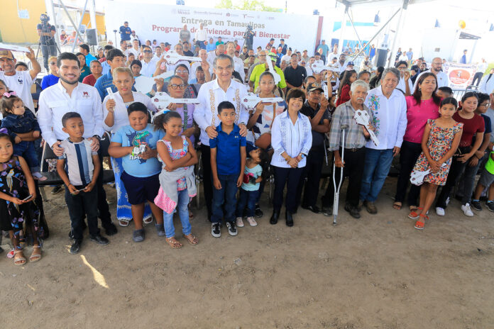 Matamoros, Tamaulipas.- Tamaulipas refrendó su liderazgo nacional en el programa de Vivienda para el Bienestar, al entregar en el desarrollo habitacional El Mezquital, 19 casas nuevas construidas por la Comisión Nacional de Vivienda para familias de pescadores, en un evento encabezado por la presidenta Claudia Sheinbaum, en enlace virtual con el gobernador Américo Villarreal Anaya.