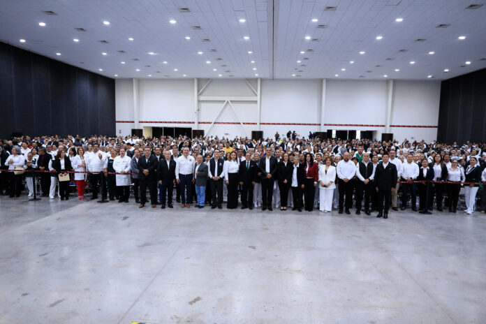 Al presidir la ceremonia de entrega de medallas por años de servicio a trabajadoras y trabajadores de las Secretarías de Salud y de la Coordinación Estatal del IMSS-Bienestar, el gobernador hizo un reconocimiento a quienes, dijo, son sus compañeros y compañeras de gremio.
