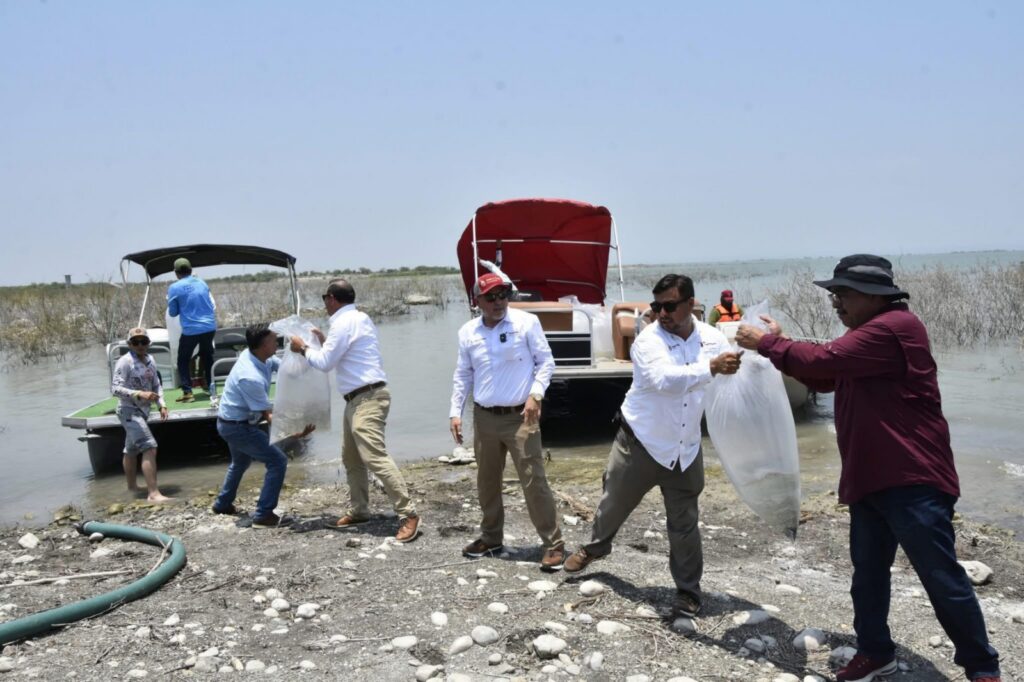 Padilla, Tamaulipas.- En un esfuerzo que conjuga la protección del medio ambiente con el impulso a la economía local, la Secretaría de Desarrollo Urbano y Medio Ambiente, a través de la Comisión de Caza y Pesca Deportiva, y en coordinación con la Secretaría de Desarrollo Rural, Pesca y Acuacultura, llevó a cabo la liberación de 30 mil alevines de lobina en la presa Vicente Guerrero, el embalse más importante de Tamaulipas y punto clave para la pesca deportiva en la región.