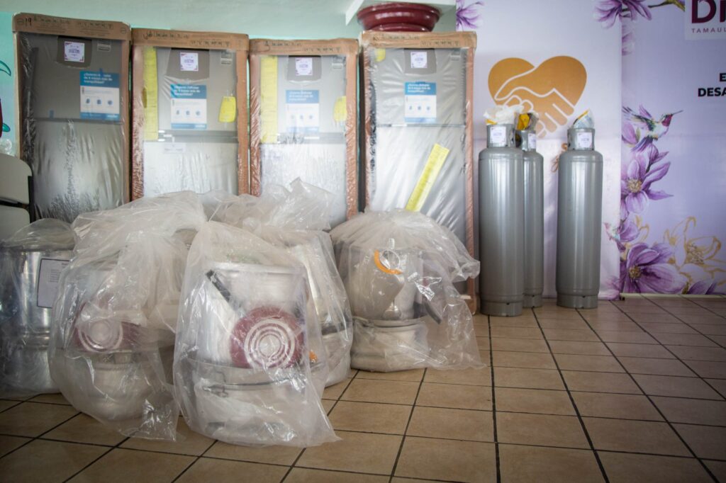 Ciudad Victoria, Tamaulipas. El Sistema para el Desarrollo Integral de la Familia de Tamaulipas, presidido por la doctora María de Villarreal, continúa con la segunda entrega de equipamiento a los Desayunadores Escolares y Comedores Comunitarios “Con Voluntad, Paz y Esperanza”, apoyos que, de manera progresiva, están llegando a todo el estado.
