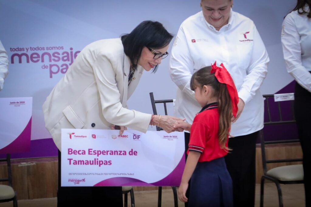 Ciudad Victoria, Tamaulipas.- El Sistema para el Desarrollo Integral de la Familia de Tamaulipas, presidido por la doctora María de Villarreal, en coordinación con la Secretaría de Educación y el Instituto Tamaulipeco de Becas, Estímulos y Créditos Educativos (ITABEC), llevó a cabo la entrega de las becas “Esperanza de Tamaulipas” y “Para la Inclusión Social en Tamaulipas”, que en el estado suman un total de 1,840 apoyos educativos.