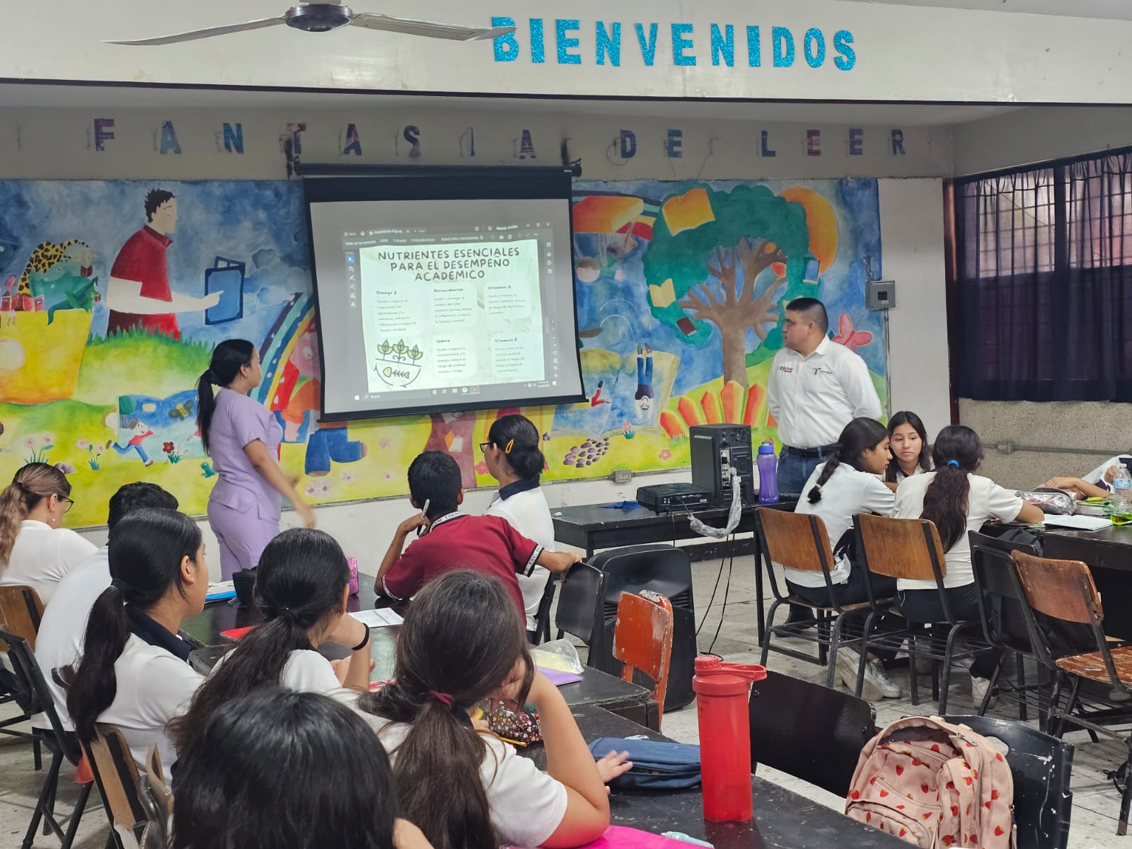 La plática estuvo a cargo de la especialista en nutrición, Betsabe Guadalupe Villarreal Araujo, quien compartió conocimientos fundamentales sobre los alimentos que favorecen la concentración, la memoria y el aprendizaje, factores clave en el desarrollo académico de las juventudes.