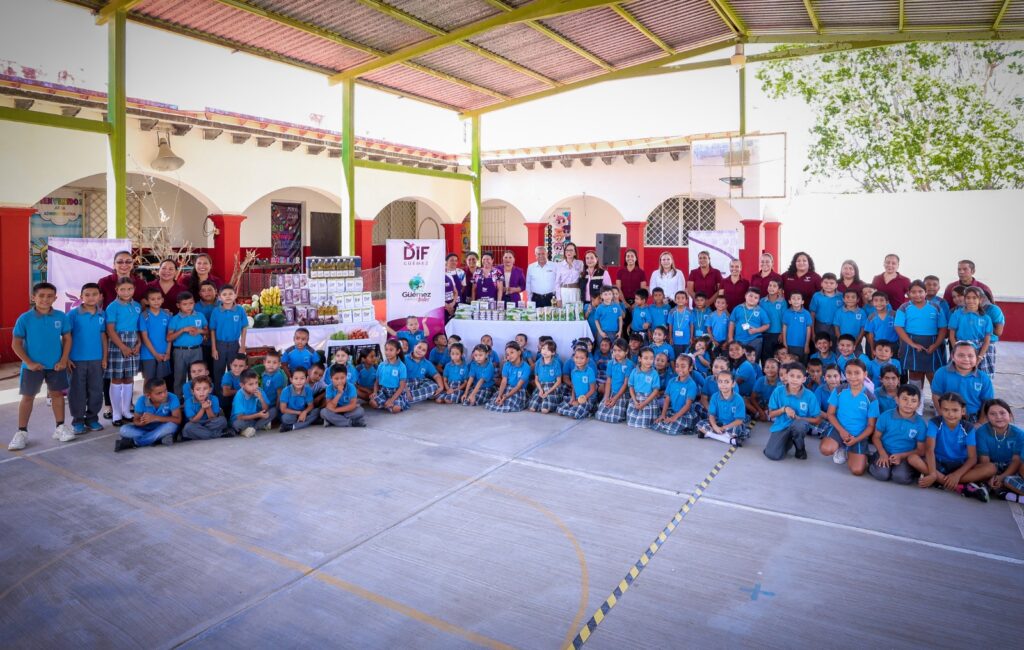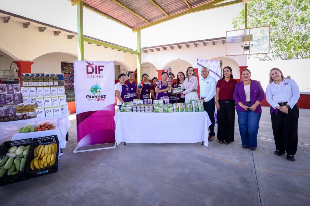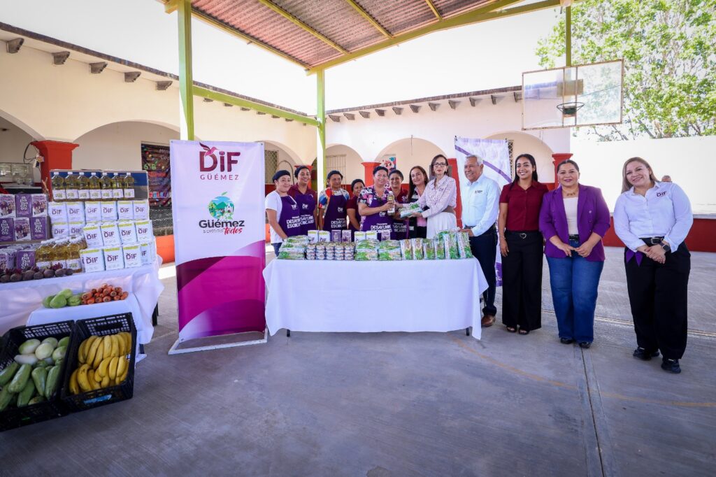 Güémez, Tamaulipas.- El Sistema para el Desarrollo Integral de la Familia de Tamaulipas que preside la doctora María de Villarreal, realizó la entrega simbólica de insumos alimentarios que enmarcaron el arranque del programa Desayunos Escolares para el ciclo escolar 2025-2026.