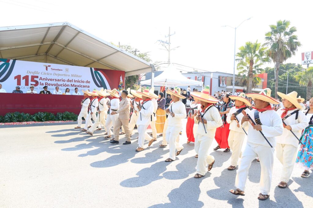 Presidida por el gobernador Américo Villarreal, la fiesta cívica transcurre en paz, con la participación de más de 3,500 estudiantes, militares y elementos de seguridad