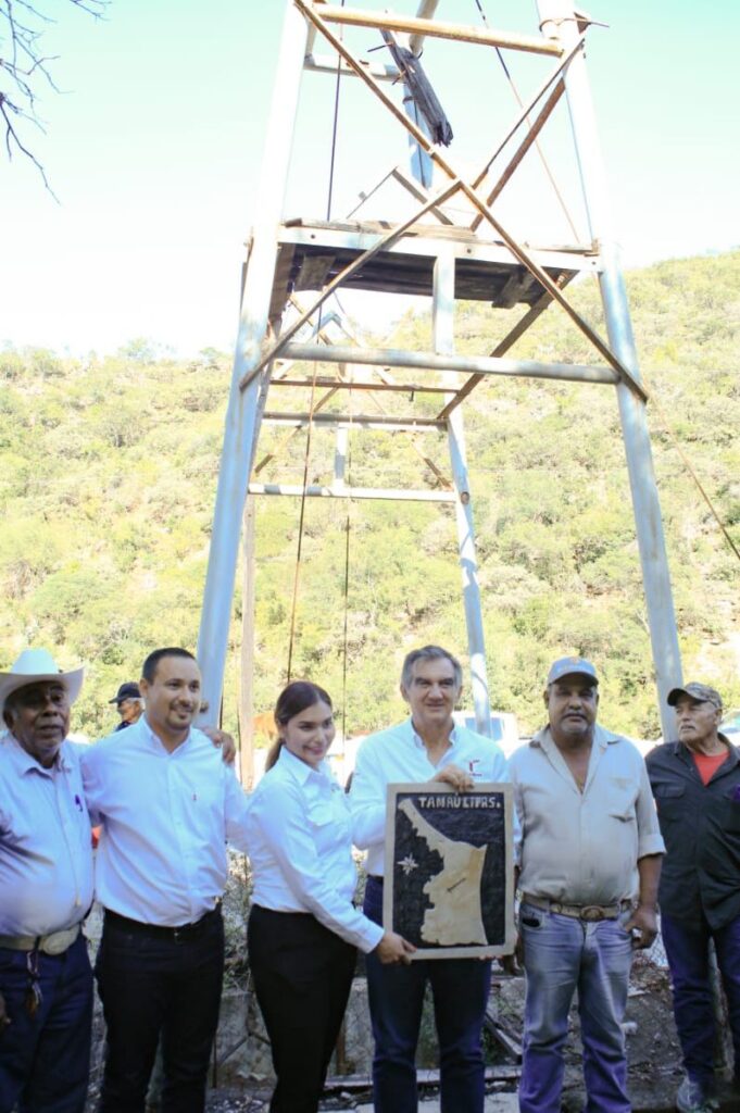 Acompañado por la presidenta del DIF Tamaulipas, María de Villarreal, y junto a la presidenta municipal, Analy Becerra Reséndez, el gobernador escuchó a don Manuel Castellanos, quien durante muchos años trabajó en la mina cuya concesión era operada por la Compañía Minera Moctezuma y Anexas, así como al comisariado ejidal, Antonio Aguirre, quienes le explicaron las condiciones en que se encuentra este centro minero, inactivo desde hace varios años.