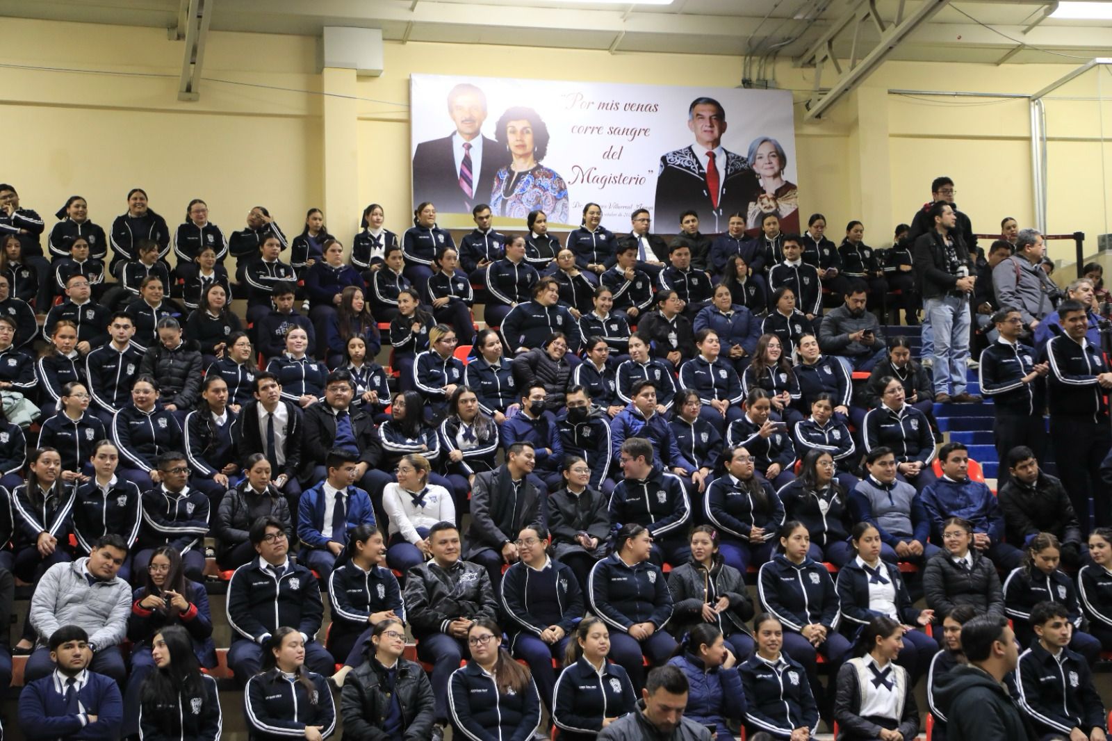 Ante estudiantes y docentes, autoridades del Poder Judicial, legisladores, integrantes de su gabinete, de las Fuerzas Armadas, y el secretario general de la Sección 30 del SNTE, Arnulfo Rodríguez Treviño, el mandatario subrayó que quienes hoy se forman como educadores tienen la oportunidad y la responsabilidad no solo de ser educadores en el aula, sino también en el ámbito social contribuyendo a la construcción social a través de las ideas y el pensamiento crítico, aunado a que el magisterio tiene un compromiso histórico en un contexto marcado por el avance de nuevas tecnologías, herramientas informáticas y nuevas formas de análisis de la información.
