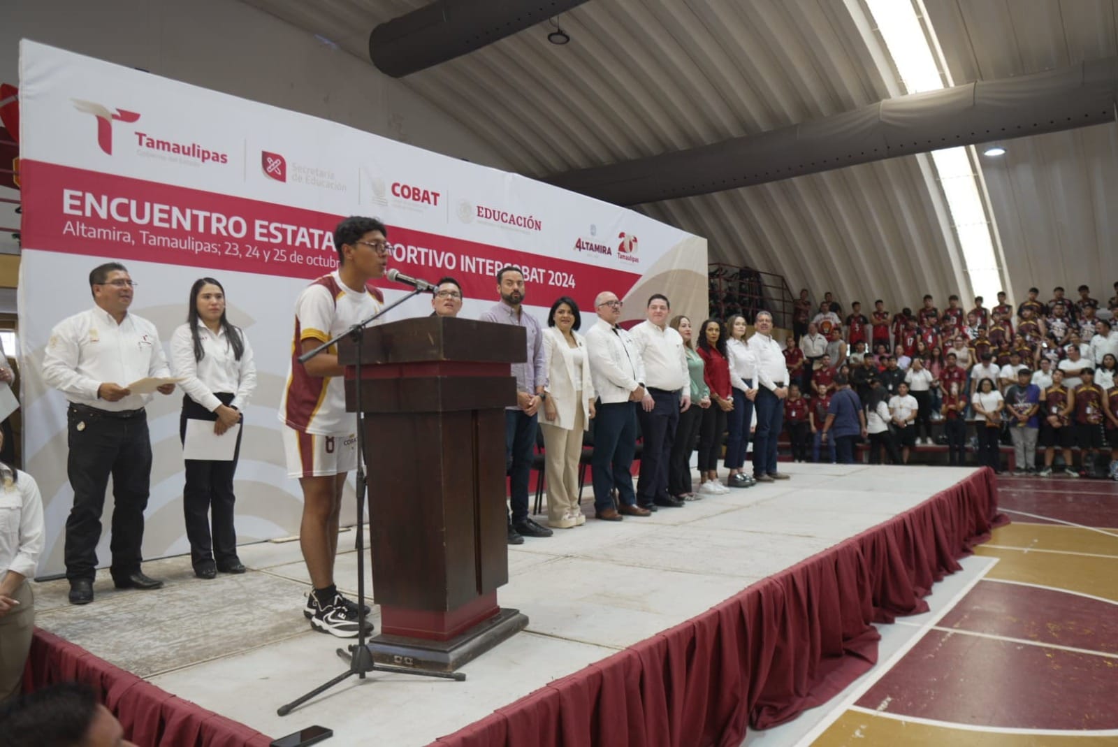Altamira, Tamaulipas.– Con una participación de más de 950 estudiantes, entrenadores, personal docente y administrativo que representa a 65 planteles educativos, arrancó el Encuentro Estatal Deportivo Inter COBAT 2024 en el municipio de Altamira.
